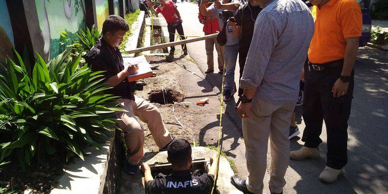 Saat pertama kali diketahui warga, baunya telah menyengat seperti bau bangkai tikus dan tercium sampai ke pemukiman warga di depan sekitar drainase tersebut.