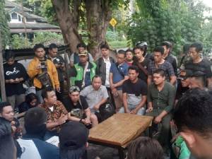 Massa ojol menunggu proses mediasi dalam penjagaan aparat kepolisian berseragam lengkap. "Dan kesepakatan sudah tertuang tertulis, nanti kalau misalnya salah satu pihak melanggar, ada konsekuensi hukum yang diterima oleh si pelanggar," jelasnya.