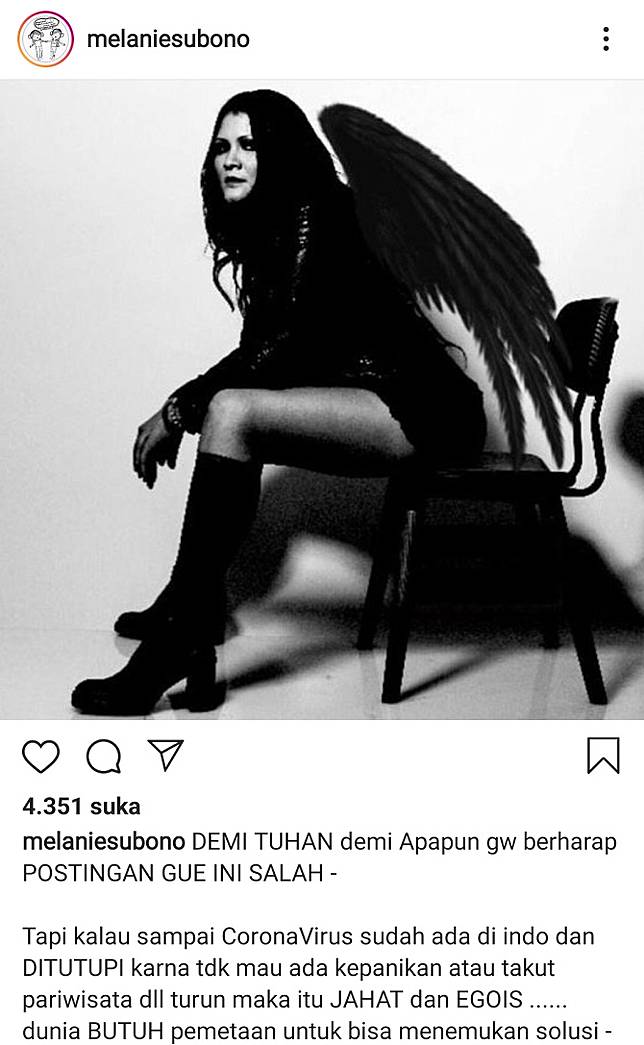 "Saya tidak percaya virus korona belum masuk ke Indonesia," tegas Melanie Subono saat dikonfirmasi JawaPos.com, Sabtu, 29 Februari 2020.