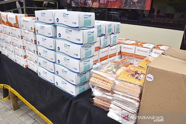 Barang bukti berupa 336 boks masker kesehatan dengan harga normalnya Rp20 ribu, dijual dengan harga Rp345 ribu. Selain itu, 950 masker tidak sesuai standar yang dijual Rp30 ribu per lusin dari harga awalnya yang hanya Rp6.000,00.